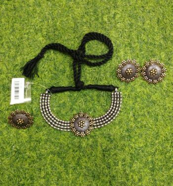 Dual Pleated Chocker Set With Finger Ring